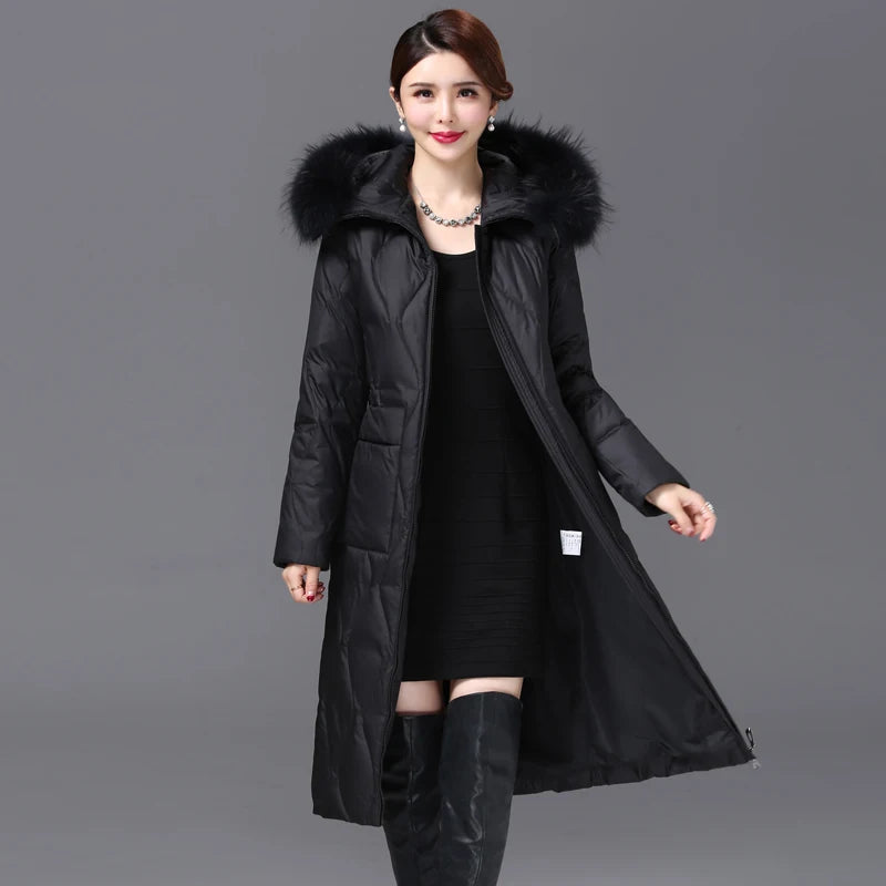 Vera | Women's Long Down Coat with Fur Collar